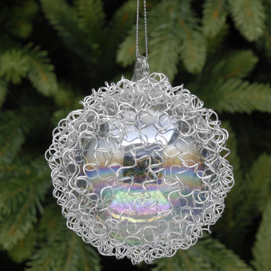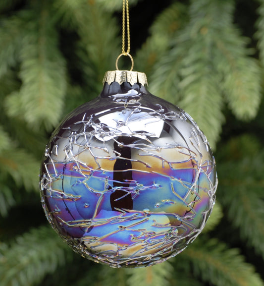 11cm Petrol Effect Crackle Finish Glass Drop Ornament