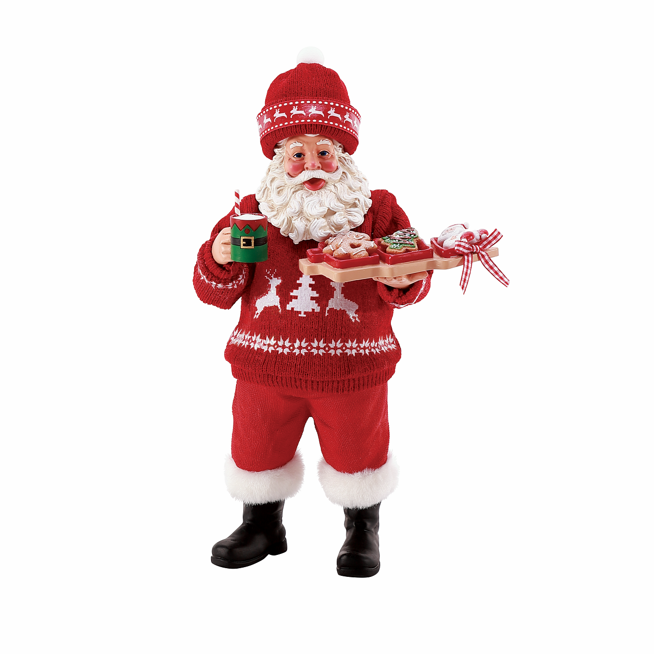 He is out of his iconic suit and dressed in a more relaxed version. This piece is free standing so can be displayed either by himself or with others to create a festive scene. He is created using high quality cast stone and Clothing - a stiffened fabric which has made Possible Dreams the world leader in Santa figurines.