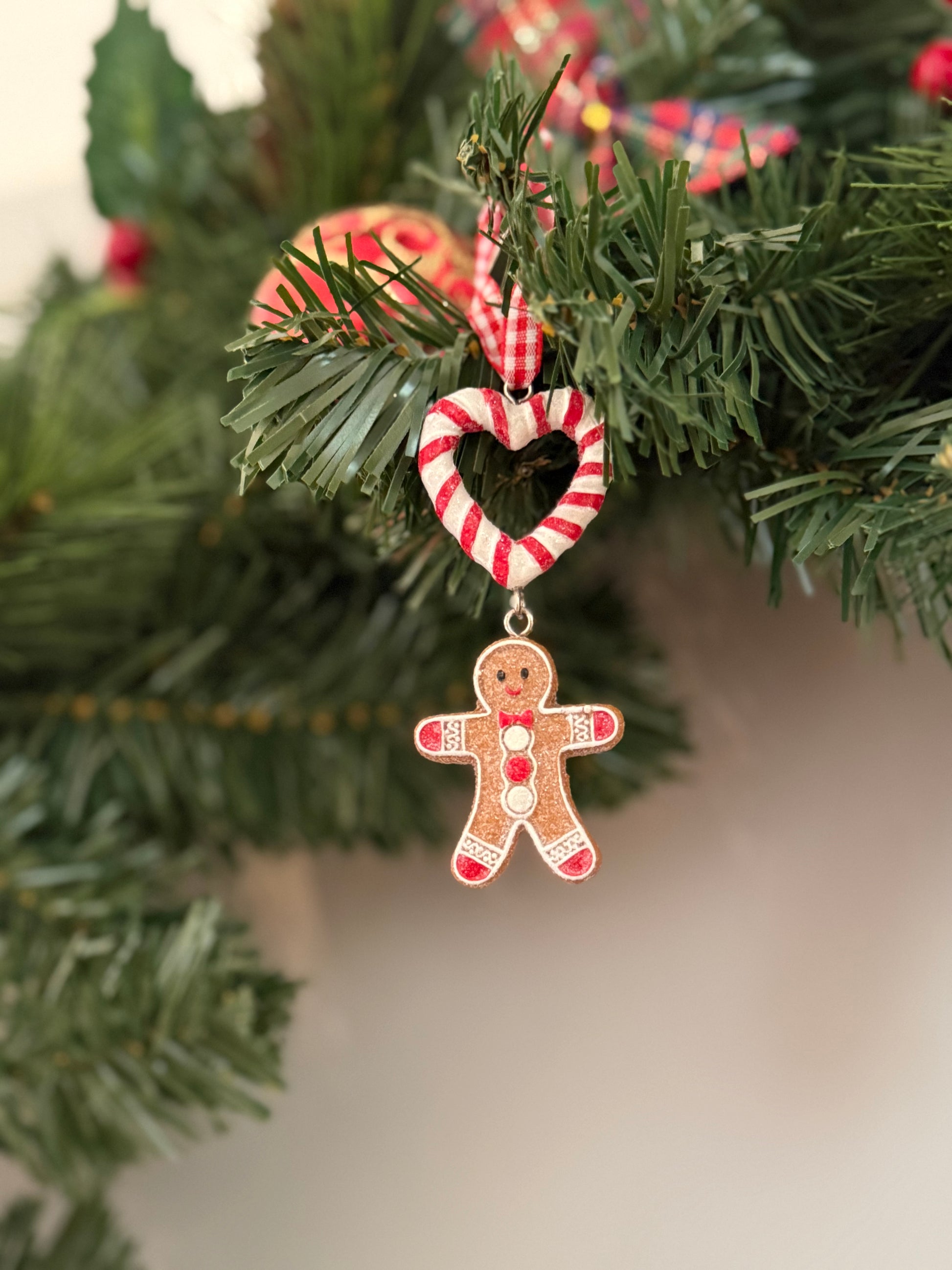 Resin Dec 8cm - Gingerbread Man w Candy Cane Heart