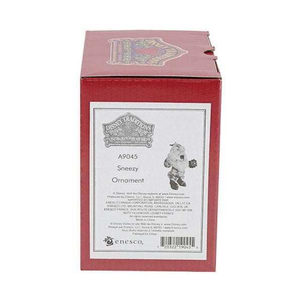 Disney Traditions combines the magic of Disney with the festive artistry of Jim Shore. This Sneezy cast stone hanging ornament is sure to add Disney's magic to your Christmas tree. Unique variations should be expected as this product is hand painted.